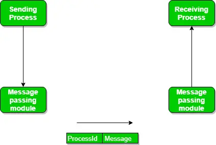 Nu zullen we beginnen met onze bespreking van de communicatie tussen processen via het doorgeven van berichten. Bij deze methode communiceren processen met elkaar zonder gebruik te maken van enige vorm van gedeeld geheugen. Als twee processen p1 en p2 met elkaar willen communiceren, gaan ze als volgt te werk: