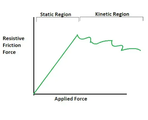 Naarmate we de uitgeoefende kracht iets vergroten tot boven de beperkende wrijving, begint de daadwerkelijke beweging. Dit betekent niet dat de wrijving verdwenen is. Het betekent alleen dat de kracht de beperkende wrijving heeft overwonnen. Deze wrijvingskracht in dit stadium staat bekend als kinetische wrijving of dynamische wrijving.