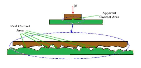 Ongeacht hoe perfect een oppervlak wordt bewerkt, afgewerkt en gereinigd, het zal onvermijdelijk oneffenheden vertonen – in wezen ruwheid, bestaande uit pieken en dalen, vergelijkbaar met een bergketen. (Technisch gezien zijn de pieken de oneffenheden.) Wanneer twee oppervlakken met elkaar in contact zijn, kan het lijken alsof ze een groot, goed gedefinieerd contactgebied hebben, maar in werkelijkheid vindt contact alleen op bepaalde plaatsen plaats – dat wil zeggen, waar de oneffenheden van beide oppervlakken interfereren.